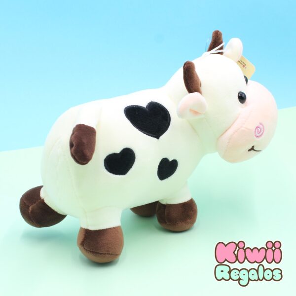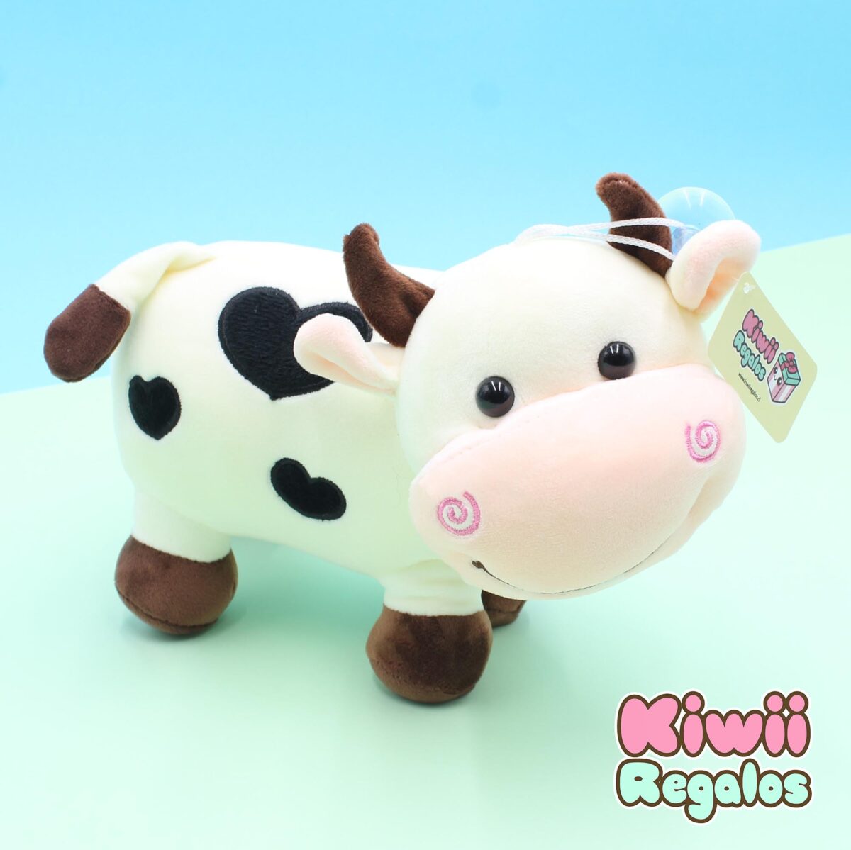 Peluche de vaquita tierna. Personaje Kawaii. Dimensiones: 22cm x 15cm aprox. Material: Poliéster.