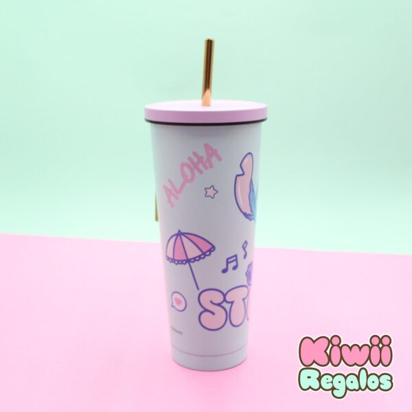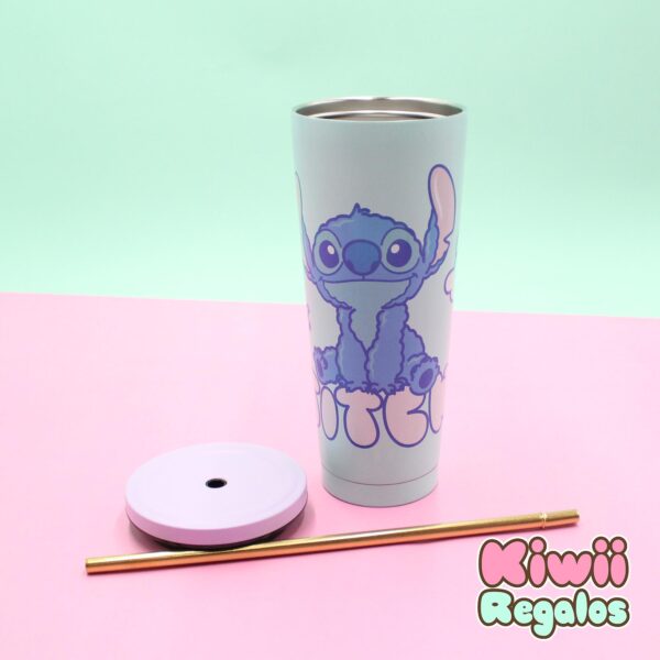 Vaso Tumbler con bombilla de Stitch. Su funcionalidad y estilo te acompañarán en cada momento. Capacidad: 750ml. Material:  Aluminio.